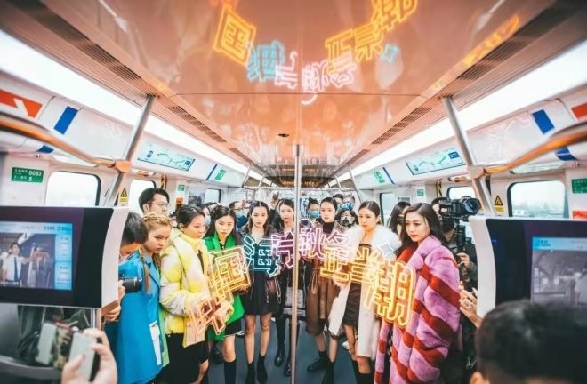 入冬,一場“皮草時裝快閃秀”在海寧通向杭州的城際地鐵車廂上演,這是海寧皮革城精心策劃的年度形象發(fā)布活動。王龍芳經(jīng)營的女裝品牌“一直”也在走秀之列,品牌主打的皮革、棉麻、真絲拼接系列時裝成為當(dāng)季流行新款。