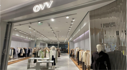 隨后,再一次通過高德地圖搜索發(fā)現(xiàn),海瀾之家新晉成立的高端女裝品牌OVV,在武漢僅開業(yè)3家,其中一家位于光谷步行街不遠處的K11高端商圈內(nèi),通過觀察店鋪布局也能夠發(fā)現(xiàn),與海瀾之家男裝品牌形成鮮明對比的是,門店服裝布局松散,活動空間更大。