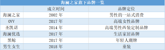 另外,像2014年成立的高檔西服襯衫定制品牌圣凱諾、2017年成立的高端女裝品牌OVV、生活方式家居品牌海瀾優(yōu)選、針對年輕人和兒童的潮流品牌黑鯨、男生女生,這些品牌都是海瀾之家擴張其業(yè)務(wù)版圖的嘗試。