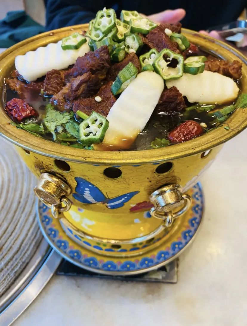 (燜小驢肉,景泰藍(lán)小鍋保溫性能很好)