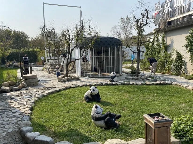 (院子里還設(shè)了微型動(dòng)物園,很多家長(zhǎng)帶著小朋友玩耍,有孔雀,狗狗,小兔子……)