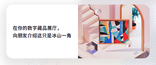 飯飯建造的個(gè)人NFT藏品展廳同樣以藍(lán)白色調(diào)為主,里面除了展示飯飯個(gè)人作品外,還有他喜愛的數(shù)字電影藏品及能夠自行變換的可編程藏品。小飯盒欣賞著藏品,決定回去后也著手打造屬于自己的NFT藏品展廳。