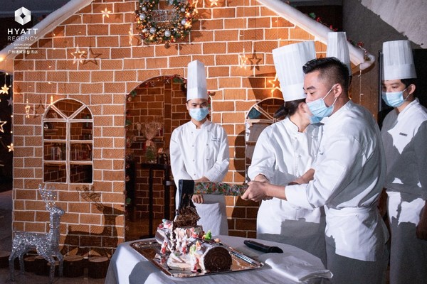 備受矚目的亮燈環(huán)節(jié),由廣州增城凱悅酒店業(yè)主代表梁山先生、鳳凰城鳳馨雙語幼兒園園長甘凌虹女士與酒店總經(jīng)理康堅(jiān)白先生共同為賓客點(diǎn)亮象征著希望與光明的圣誕樹,同時(shí)也迎來圣誕姜餅屋的開幕,開幕式上行政總廚陳鎮(zhèn)瑞先生與餅房廚師長廖美蘭女士向賓客分享姜餅屋的來源及創(chuàng)作靈感,姜餅屋由酒店工程部與廚務(wù)部耗時(shí)將近一個(gè)月共同完成,2021塊姜餅出自酒店餅房團(tuán)隊(duì)的巧手匠心,即日起,賓客可在姜餅屋內(nèi)挑選由酒店餅房手工自制的賀禮,為親友送上甜蜜的節(jié)日祝福。