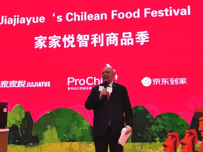 智利駐華大使路易斯·施密特表示,智利生產(chǎn)高品質(zhì)的三文魚、葡萄酒,還有在中國非常受歡迎的車?yán)遄印Mㄟ^我們與家家悅聯(lián)合京東到家推出的智利商品節(jié)促銷活動,希望更多的消費(fèi)者知道智利是一個生產(chǎn)高質(zhì)量、營養(yǎng)豐富、安全農(nóng)產(chǎn)品的國家,能更多地了解智利的各種美味產(chǎn)品。