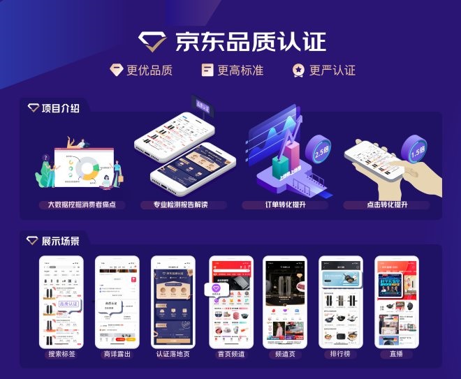 目前,京東“品質(zhì)認證”專項已與SGS、中紡聯(lián)檢、天祥、中國檢驗檢疫科學(xué)研究院、華測等近40家權(quán)威質(zhì)檢機構(gòu)合作,制定并發(fā)布了150余條要求更嚴的細分類目質(zhì)量標準,覆蓋3C、母嬰、生鮮、食品等品類。滿足京東“品質(zhì)認證”質(zhì)量推優(yōu)標準的商品,不僅可以在京東站內(nèi)獲得“品質(zhì)認證”標簽,還可以在品質(zhì)頻道、品質(zhì)直播、品質(zhì)榜單、品質(zhì)評測、品質(zhì)種草等站內(nèi)資源中優(yōu)先獲得營銷權(quán)益,從而獲取更多曝光和提升銷量。