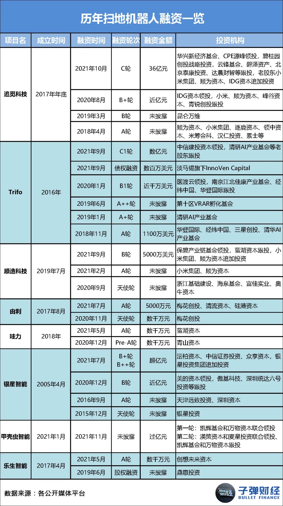 據(jù)「子彈財(cái)經(jīng)」了解,今年以來(lái),掃地機(jī)器人行業(yè)至少發(fā)生了10起投融資事件,幾乎每個(gè)月都有玩家獲得數(shù)千萬(wàn)級(jí)融資。