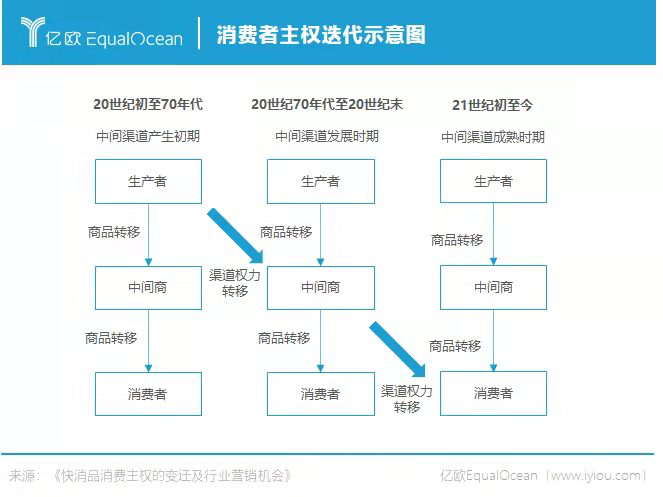 簡(jiǎn)而言之,消費(fèi)市場(chǎng)走過了產(chǎn)品主權(quán)時(shí)代、渠道主權(quán)時(shí)代,目前進(jìn)入消費(fèi)者主權(quán)時(shí)代。