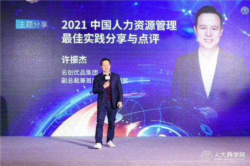 許振杰先生于大會上進(jìn)行《透過關(guān)鍵人才構(gòu)建企業(yè)核心競爭力》最佳案例展示,分享了名創(chuàng)優(yōu)品在不同發(fā)展階段的人才戰(zhàn)略和人才培養(yǎng)模式,強(qiáng)調(diào)了關(guān)鍵人才在提高經(jīng)營效率、推動組織變革中的重要作用,為業(yè)界揭秘了名創(chuàng)優(yōu)品的人才建設(shè)之道。