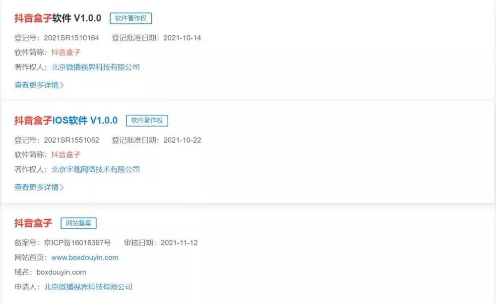 此后,抖音在10月進行“抖音盒子”相關(guān)軟件著作權(quán)、商標的申請;11月對抖音盒子官網(wǎng)www.boxdouyin.com進行備案。與此同時,抖音電商發(fā)布《電商內(nèi)容創(chuàng)作規(guī)范》,建立起一套內(nèi)容生態(tài)分級標準制度,并陸續(xù)邀請達人入駐新產(chǎn)品測試。