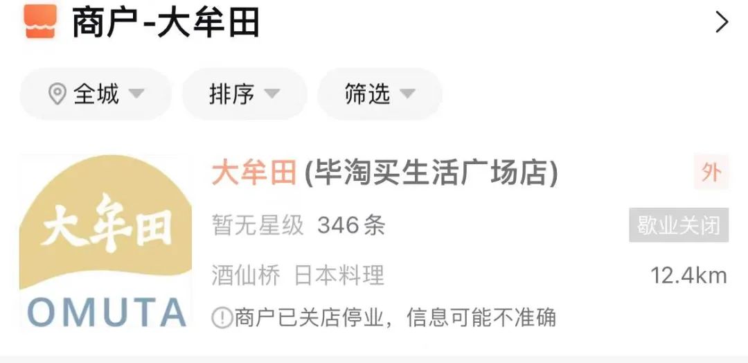 2)開業(yè)不到半年的日料店大牟田關門