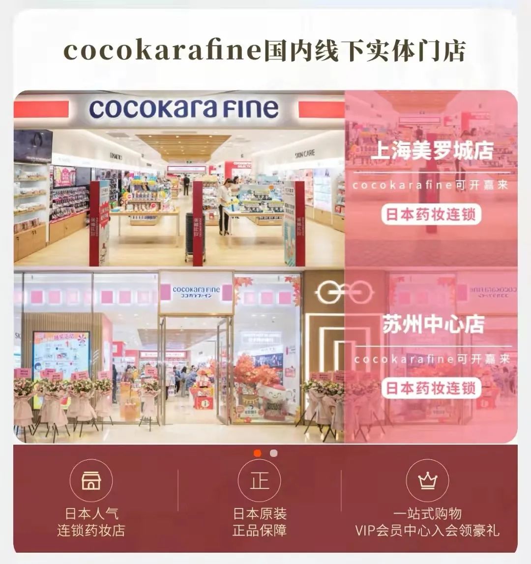 作為日本“藥妝連鎖巨頭”之一,可開嘉來創(chuàng)立于2008年,由東京“藥妝”店Seijo和大阪“藥妝”店Segami Medics合并而成。根據可開嘉來官方微信,截止今年7月底,可開嘉來旗下?lián)碛?400+家門店,其中有200+免稅店鋪。