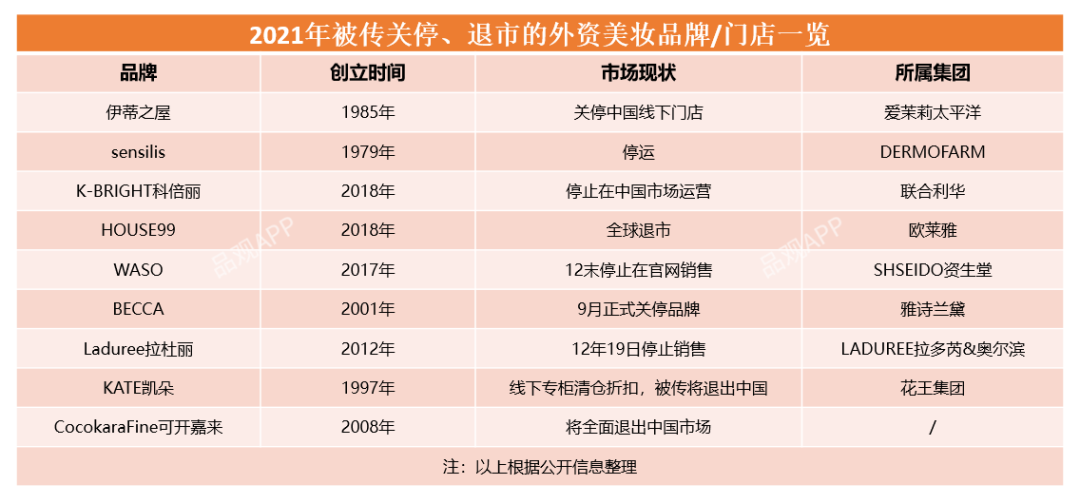 具體來看,當前已停運的外資品牌包括了聯(lián)合利華旗下品牌K-BRIGHT科倍麗、sensilis、雅詩蘭黛集團旗下品牌BECCA等,此外,由奧爾濱生產的拉杜麗、資生堂旗下護膚系列WASO都將在本月停止銷售。
