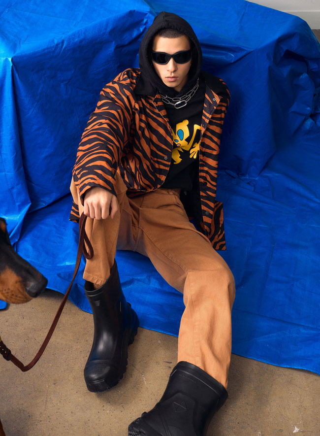 一系列單品包括了經(jīng)典街頭單品棒球夾克、MA1飛行員夾克,到馬海毛虎紋提花毛衣、牛仔夾克、牛仔褲、針織帽衫等,滿足不同場合各種配搭需求。部分單品使用特殊技法工藝,在洗水后方能呈現(xiàn)虎紋紋路,為虎年穿搭更添趣味。