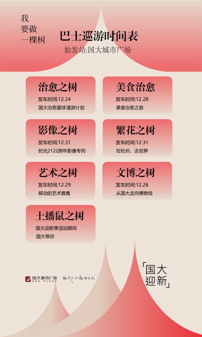 12月24日,「治愈之樹」移動巴士將率先發(fā)車。主理人是棲霞藝墅創(chuàng)始人金曉霞,她也是“國大土播鼠”兩年來的主播。治愈之樹的種子,是貫穿國大一整年的治愈主題,在這一年里走進(jìn)這里的每一位顧客,都是種樹人。傳承于2020年“杭州城市心情實驗”,國大在今年二月開啟“治愈星球”的第一站:心理治愈,聚焦都市人的心情與情緒變化,記錄心情、治愈人心。隨后,國大陸續(xù)以美顏、運動、盲盒、萌寵、美食等九次治愈,與城市深度共情、共同生長。屆時,這輛巴士將載著20名國大顧客,從國大出發(fā),繞著國大樓體一圈一圈蕩漾開去,三小時后回到國大,像樹木年輪和生命輪回。