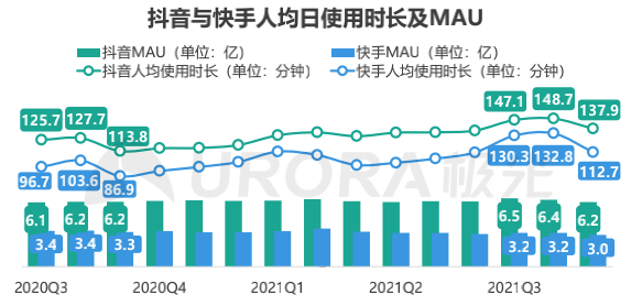 據(jù)極光智庫(kù)發(fā)布《2021年Q3移動(dòng)互聯(lián)網(wǎng)行業(yè)數(shù)據(jù)研究報(bào)告》顯示,2021年Q3,移動(dòng)網(wǎng)民人均App單日使用時(shí)長(zhǎng)達(dá)5.5小時(shí),而抖音人均日使用時(shí)長(zhǎng)達(dá)2.41小時(shí)。誠(chéng)然,短視頻成為網(wǎng)民手機(jī)中最“殺”時(shí)間的娛樂(lè)消遣產(chǎn)品。