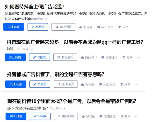 “逃離抖音”成為部分用戶(hù)不得已的選擇。近年來(lái),抖音廣告的投放力度越來(lái)越大,這讓不少以?shī)蕵?lè)為主要訴求的抖音用戶(hù)怨聲載道,畢竟消費(fèi)不是他們的主要想法,不純粹的內(nèi)容極大影響了用戶(hù)體驗(yàn)。