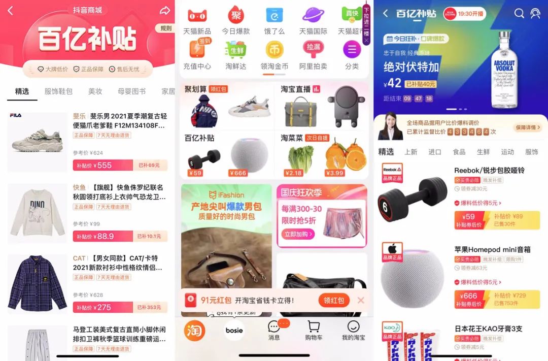 與電商第一梯隊(duì)玩家相比,抖音的供應(yīng)鏈能力明顯較弱,這也導(dǎo)致抖音“去淘”后,GMV大幅縮水,抖音商城界面與天貓、京東商城相似,還模仿拼多多推出“百億補(bǔ)貼”。