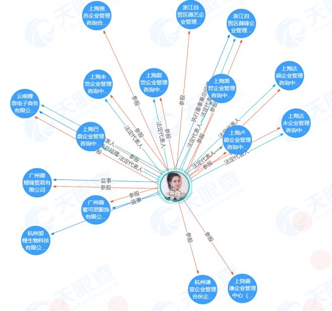 天眼查App顯示,目前薇婭(黃薇)有16家關聯(lián)公司,其中11家為存續(xù)狀態(tài),投資版圖涉及電子商務、服飾貿(mào)易、企業(yè)管理等。薇婭還持有廣州微婭鋒貿(mào)易有限公司49%的股份、廣州薇蜜可思服飾有限公司45%的股份,以及上饒嘉謙企業(yè)管理中心(有限合伙)5%的股份,這3家企業(yè)的疑似實際控制人均為薇婭丈夫董海鋒。