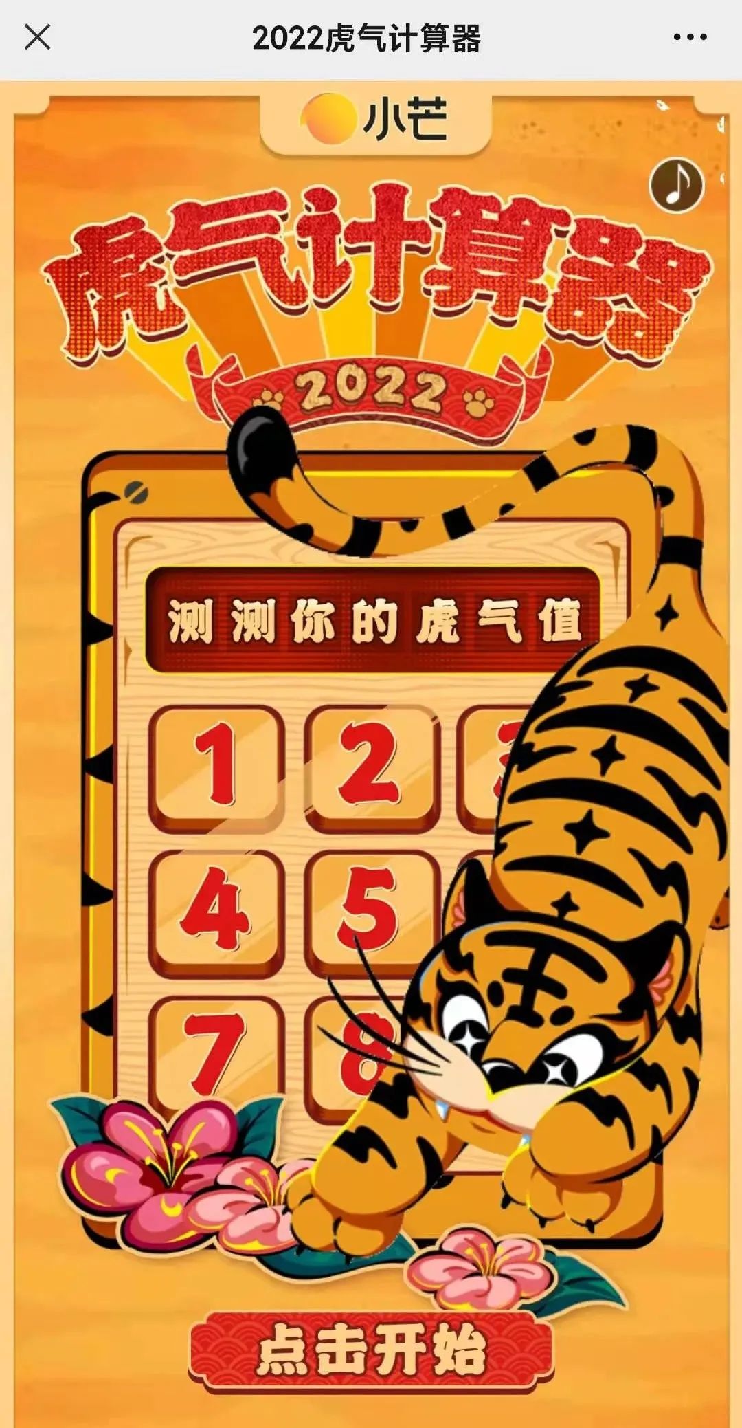 針對這一現(xiàn)象,小芒APP也選擇用H5形式打造虎年專屬活動,只要在“計(jì)算器”中按出2022年的心愿事項(xiàng),就可以生成“種花青年”2022專屬虎氣值,同時(shí)通過此渠道用戶可以直接跳轉(zhuǎn)至小芒站內(nèi),讓越來越多用戶開啟“國潮之旅”。