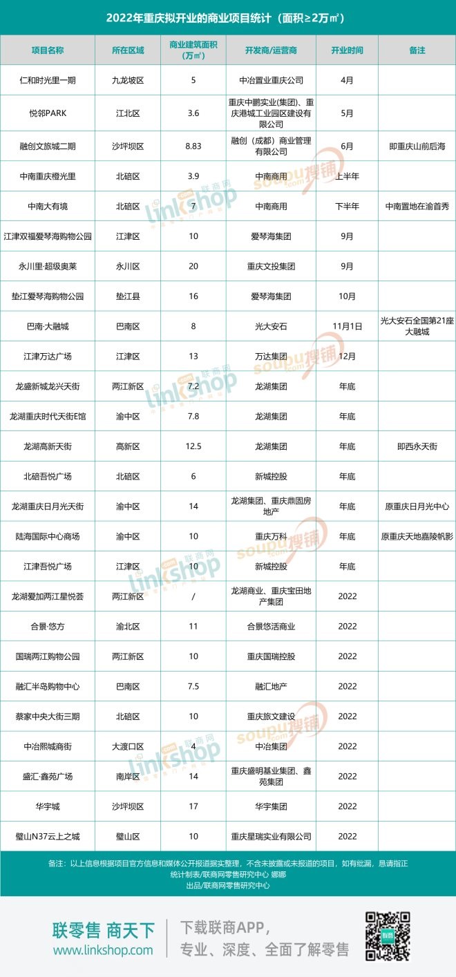 附2022年重慶擬開(kāi)業(yè)商業(yè)體盤(pán)點(diǎn)