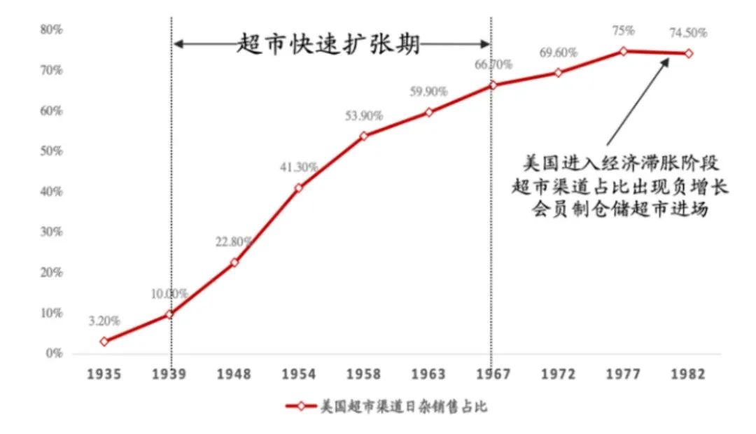 圖:美國超市在上世紀(jì)40-60年代快速擴(kuò)張(來源:中泰證券研究)