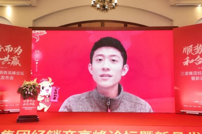 三諾集團(tuán)品牌代言人影視名星張一山和乒乓球奧運(yùn)冠軍王皓分別向三諾人送來祝福和對企業(yè)的期許。