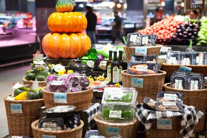 鋼木結(jié)構(gòu)帶LED燈帶的貨架既美觀安全又節(jié)能環(huán)保。除了政府要求的消防安全設施外,該中心創(chuàng)建了“食品安全檢測中心”,與食藥監(jiān)相同的設備保證了食品的安全性。