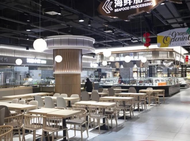生鮮作為居民們的生活所需,自然是重中之重。日日鮮、不賣隔夜菜、各類鮮活海鮮現(xiàn)場加工屬于基本服務操作,除此之外,朋聯(lián)國際購物中心華新店還創(chuàng)建了“食品安全檢測中心”,與食藥監(jiān)相同的設備保證了食品的安全性。