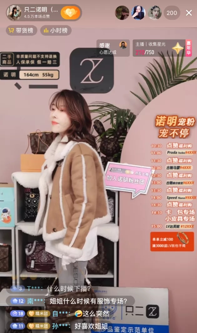 祝泰倪奇:去年疫情期間,我們就決定發(fā)力直播,在只二APP和抖音平臺(tái)兩條腿走路,算是二奢行業(yè)里第一批進(jìn)駐抖音的品牌。