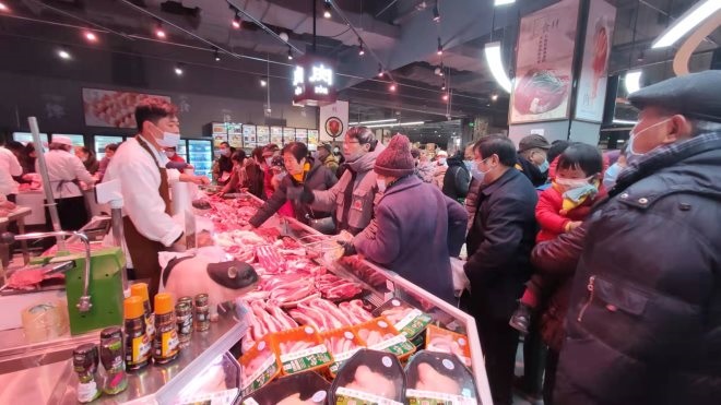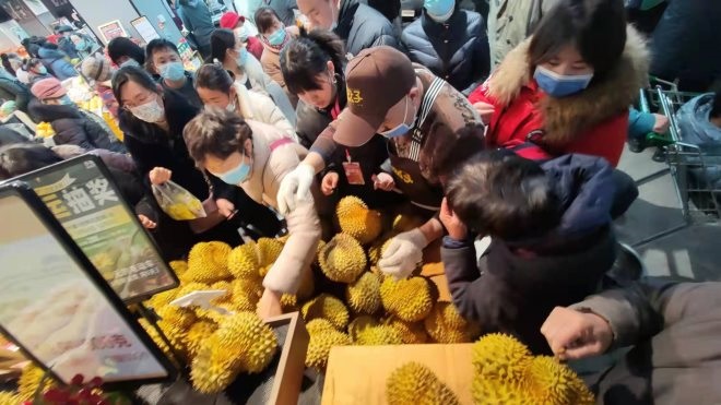 此外,開業(yè)優(yōu)惠也為門店帶來了不少人氣。19.9元/斤的泰枕榴蓮銷量達到2000斤,7.98元/斤的帶皮前腿豬肉、1.98元/斤的精品西紅柿等商品吸引大量消費者排隊購買。