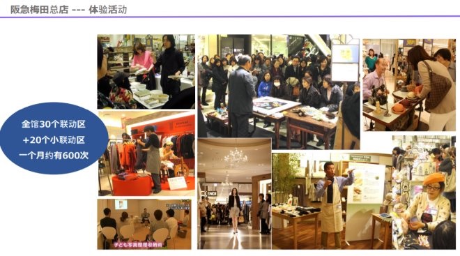 除此之外就是我們寧波阪急的還有一個是叫做HankyuClub也是一個VIP的一個課程,我們就這些課程的話,我們的大客戶的話也會定期的做一些思想活動。比如說這張圖上我們可以看到一些造型課堂啊,還有一些這個紅酒品鑒,這些活動的話我們是對我們VIP客人是也有一些互動的,所以說通過這些大的活動,小的活動。