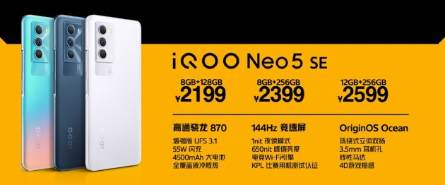 iQOO Neo5 SE開售,搭載驍龍870處理器及LCD競速屏