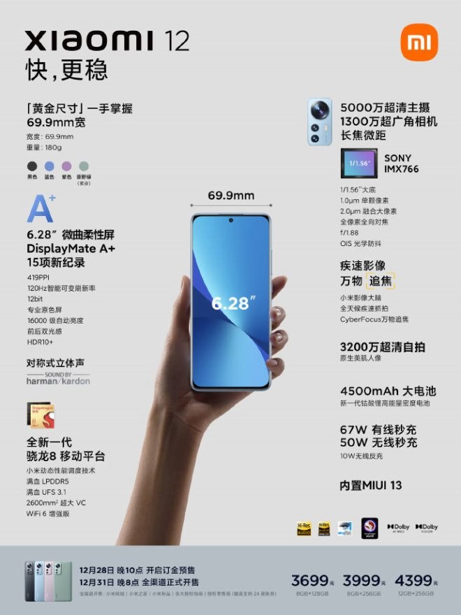 正式對(duì)標(biāo)蘋(píng)果,雙尺寸小米12系列3199元起售