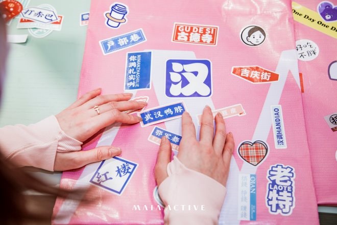 開業(yè)當(dāng)天,基于“把城市變成游樂場”的品牌社群核心理念,品牌開啟華中地區(qū)「MAIA FUN CLUB」首場消費者線下活動——“MAIA城市熱練樂園”。武漢消費者通過線上報名,不僅可以參與“DIY自己的快樂”,在手作老師的帶領(lǐng)下,利用提前清洗好的店鋪圍檔材料,制作專屬環(huán)保手袋;還可以參與“MAIA熱練營”——大球瑜伽,體驗瑜伽的完全伸展到多人大球瑜伽互動。