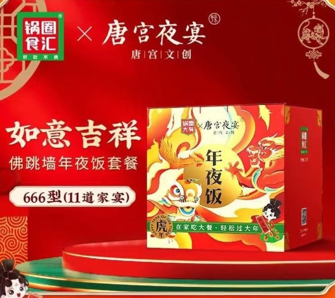 面對這些普遍存在的行業(yè)問題,鍋圈食匯、懶熊火鍋等頭部品牌從去年開始就在嘗試推新品類,大量豐富SKU,以探索更多的可能性。拿鍋圈食匯來說,除了嘗試在店內(nèi)加增水果、飲品等品類,在火鍋食材上做更大的延伸,還在去年推出了自有方便速食品牌“鍋圈憨憨”,同步上架了自熱火鍋、酸辣粉、螺螄粉等多款產(chǎn)品;今年又相繼推出了鹵味、預制菜等多個品類,在其APP和小程序上,目前正在主推的產(chǎn)品正是12月上線的預制菜年夜飯?zhí)撞汀?/p>