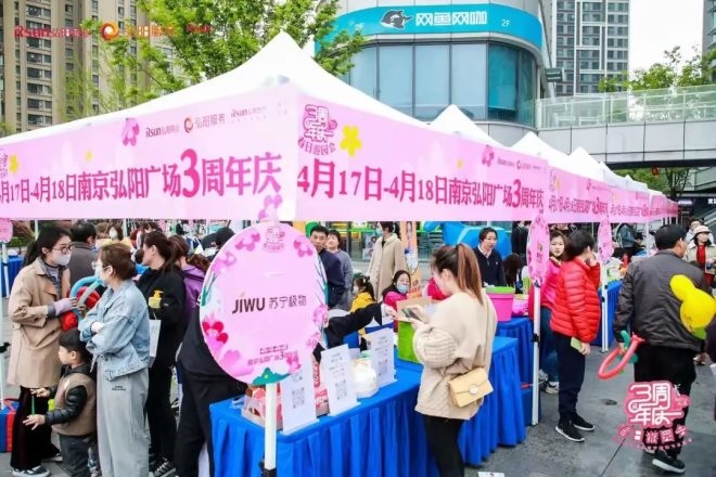 進入弘陽商圈,環(huán)繞著于此的多個小區(qū),均已“弘陽”命名。在南京,弘陽商業(yè)服務與弘陽生活服務已形成緊密的鏈接關(guān)系,吃喝購物在弘陽,生活住行也在弘陽,依托弘陽資源打造的一站式生活消費方式,已然成為南京人的生活日常。