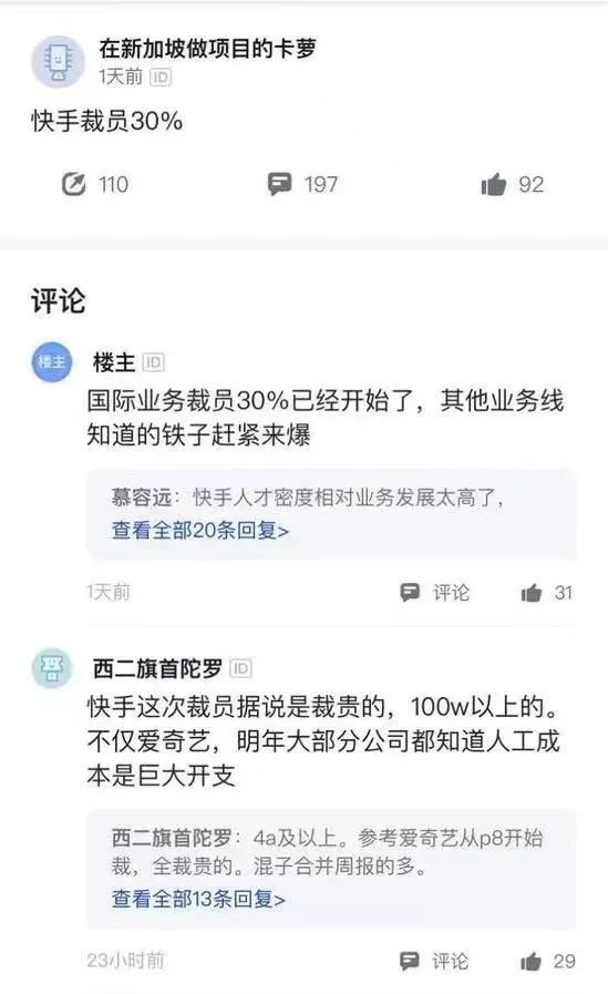 快手此次裁員也率先向國際化業(yè)務(wù)動(dòng)手,據(jù)快手員工在脈脈爆料,國際業(yè)務(wù)裁員30%。