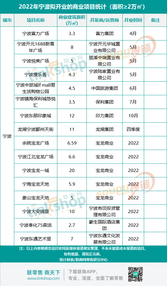 寧波2022年計(jì)劃新開(kāi)16家購(gòu)物中心,你看好哪一家?
