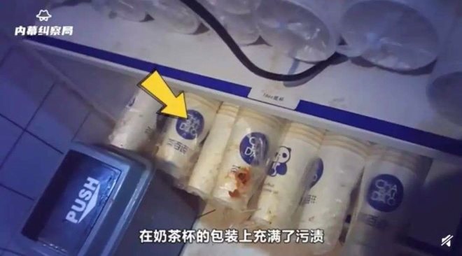 博主“內(nèi)幕糾察局”暗訪茶百道,發(fā)現(xiàn)奶茶杯包裝充滿污漬 來源 / 微博視頻截圖