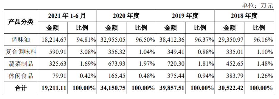 幺麻子在招股書中表示,報告期內(nèi),公司來自主要產(chǎn)品藤椒油的收入占主營業(yè)務(wù)收入的比例均在85%以上,公司正在積極拓展復(fù)合調(diào)味品、休閑食品以及其他調(diào)味油產(chǎn)品的相關(guān)業(yè)務(wù),短期內(nèi)公司業(yè)績對藤椒油產(chǎn)品仍然存在較大依賴。