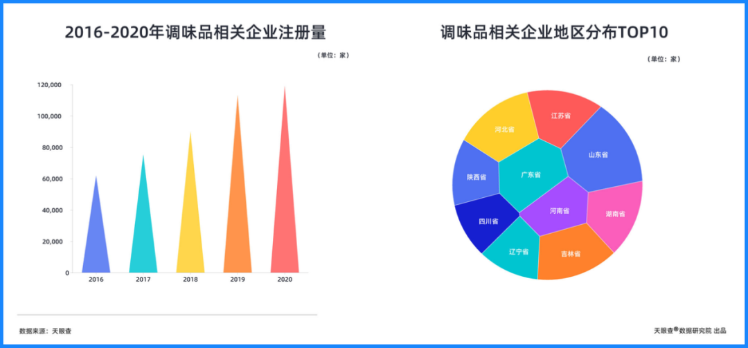 這幾年,調(diào)味品市場增速顯著,規(guī)模已至數(shù)千億。天眼查數(shù)據(jù)顯示,目前國內(nèi)已有58.8萬家調(diào)味品相關(guān)企業(yè),除了百年醬料老字號李錦記、高端醬油品牌千禾味業(yè)等獨(dú)占鰲頭的老牌企業(yè),還有6成以上相關(guān)企業(yè)成立于5年內(nèi),頗具后來居上之勢。