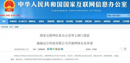 僅隔兩日,國家網(wǎng)信辦發(fā)布公告稱,為防范國家數(shù)據(jù)安全風(fēng)險(xiǎn),維護(hù)國家安全,保障公共利益,網(wǎng)絡(luò)安全審查辦公室按照《網(wǎng)絡(luò)安全審查辦法》,對(duì)“滴滴出行”實(shí)施網(wǎng)絡(luò)安全審查。