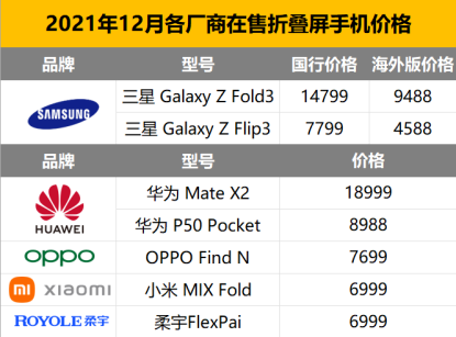 折疊屏手機(jī)當(dāng)前價(jià)格 奇偶派制表