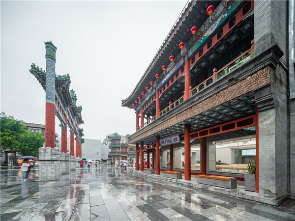 例如,喜茶北京前門大街店建筑外立面延續(xù)和保持了原有老北京古建筑特色,內部以榫卯、梁柱等傳統(tǒng)建筑元素為靈感,以現(xiàn)代設計語言進行重現(xiàn),讓人在傳統(tǒng)與現(xiàn)代的碰撞中,感受到獨特的東方美學;喜茶西安永寧里店外觀充滿現(xiàn)代氣息,同時又與周圍古城墻形成巧妙融合,內部以兵馬俑、古城墻等西安城市文化元素為靈感進行大膽重構,讓人在品飲時能感受到西安歷史文化的厚重綿長;喜茶深圳南頭古城店以解構主義手法營造動靜結合的空間布局,內部配以嶺南裝飾元素,讓人既能感受到深圳的現(xiàn)代與新潮,也能體味出嶺南文化的閑適與恬淡。
