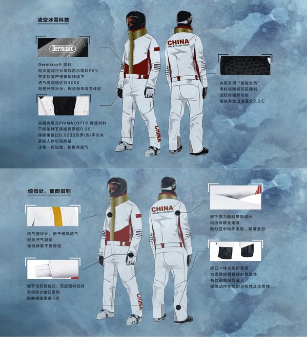 中國自由式滑雪空中技巧國家隊比賽服設計細節(jié)