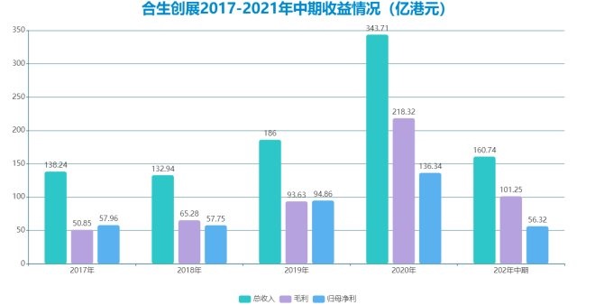 2021年上半年,合生創(chuàng)展總收入160.74億港元,而投資貢獻(xiàn)收入達(dá)到50.07億港元。