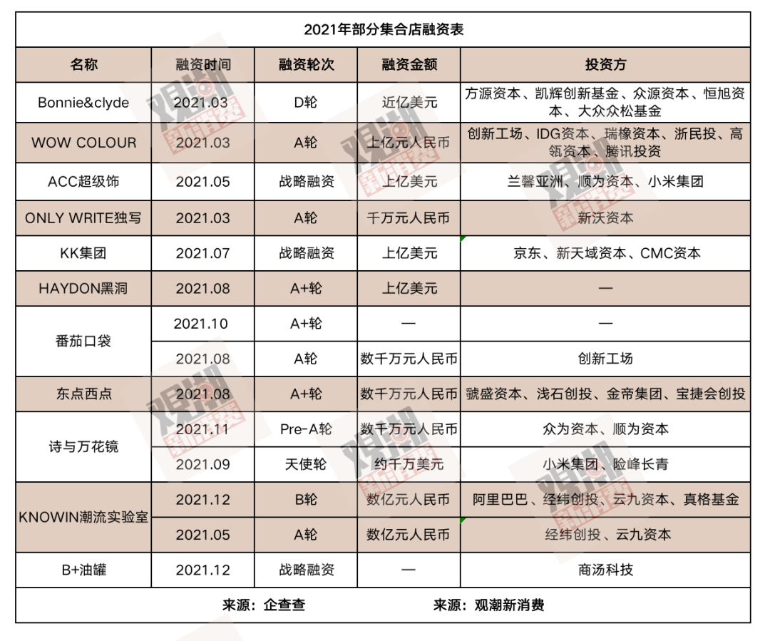 從2021年3月開(kāi)始,集合店融資的熱度就開(kāi)始高漲起來(lái),直至年末最后一天,資本也沒(méi)放棄入局的機(jī)會(huì)。