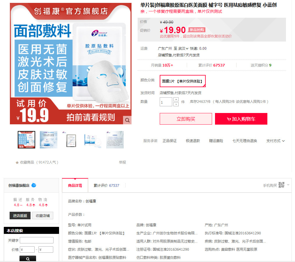 截自創(chuàng)福康天貓旗艦店(1月6日10時許截圖)