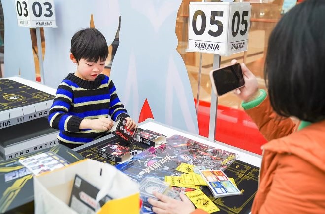 另外,在此次開(kāi)業(yè)的上海太陽(yáng)宮店中,卡游動(dòng)漫開(kāi)創(chuàng)性地增設(shè)了全國(guó)首批4大英雄對(duì)決基地之上!疤旎弊鳛槿A東地區(qū)的卡牌訓(xùn)練大本營(yíng)?ㄅ谱鳛樾屡d的創(chuàng)新消費(fèi)品類,涉及文創(chuàng)、潮玩等多個(gè)領(lǐng)域,是具有收藏和分享屬性的社交產(chǎn)品?ㄓ蝿(dòng)漫基于卡牌已有的競(jìng)技體系,開(kāi)發(fā)了國(guó)內(nèi)TCG(Trading Card Game,簡(jiǎn)稱TCG)競(jìng)賽“英雄對(duì)決”,在鍛煉青少年們的理解和聯(lián)想能力,提升創(chuàng)造性思維和數(shù)學(xué)思維的同時(shí),也培養(yǎng)了他們保持謙恭禮儀和坦然接受成敗的健康心理。據(jù)悉,目前卡游英雄對(duì)決已經(jīng)包括宇宙英雄奧特曼和漫威兩大IP系列,在今后還將持續(xù)有更多優(yōu)秀IP加入。
