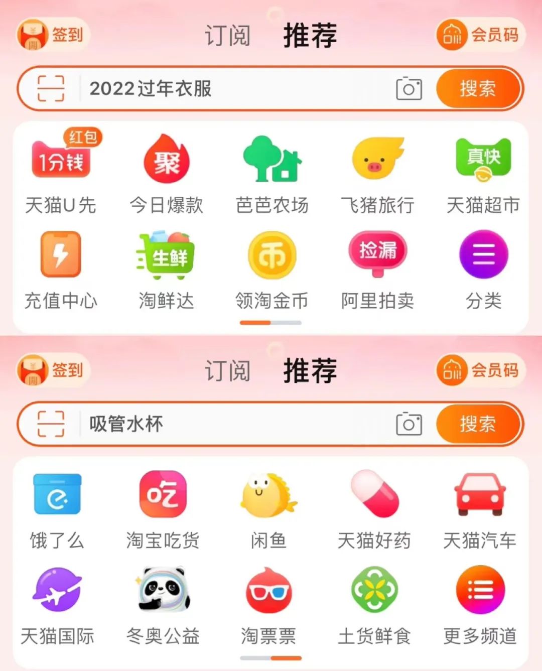 除了自然流量的加持,淘寶內(nèi)還有眾多天貓的業(yè)務(wù)入口。例如目前手機(jī)淘寶首頁導(dǎo)航欄的第一位,為“天貓U先”,此外,天貓超市、天貓好藥、天貓汽車、天貓國際幾大業(yè)務(wù)的入口也在首頁導(dǎo)航欄內(nèi)。